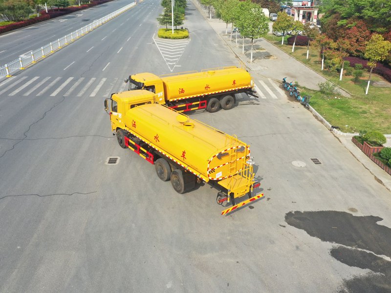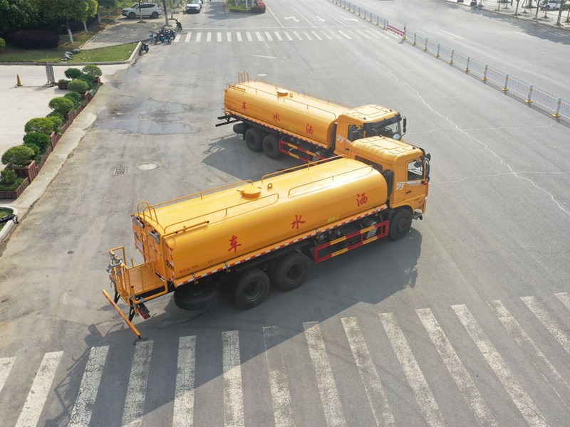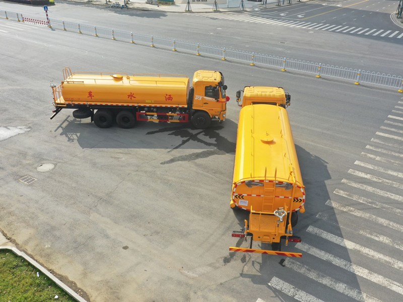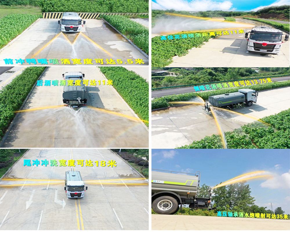 | 用功能配置:罐体实际容积约为19立方米,(罐体有效参数15.17立方米、额定载质量14520kg、)采用武钢优质碳钢板卷压成型。配备专用洒水泵,自吸自排,前喷后洒、侧喷、后工作平台及洒水高压炮。洒水泵自吸高度为6米左右,整车洒水宽度14米左右,后工作平台水炮可调成:直冲状、大雨、中雨、小雨、毛毛雨,有效射程≥28米,整车带接头、水位计,自流阀。后工作平台主管路带1寸浇花接口,附送2根3米水管,1个爬梯,两侧及后保险杠。 |